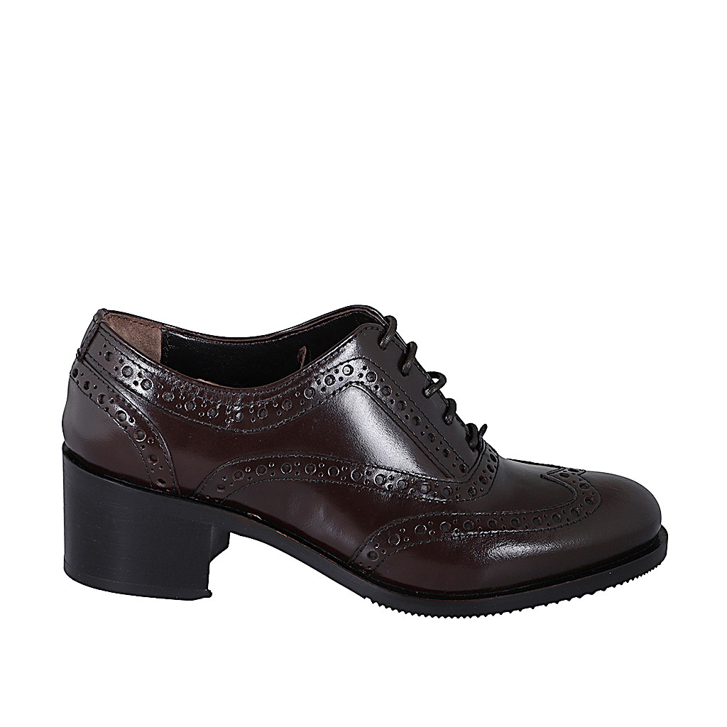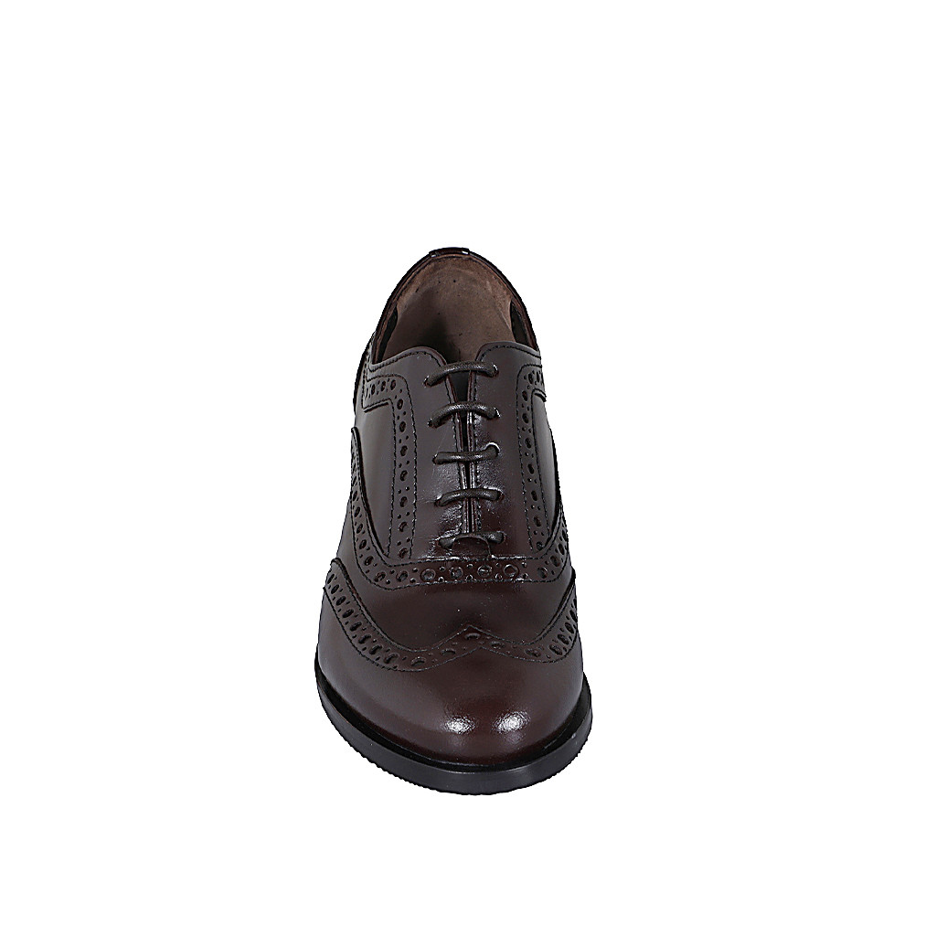 Woman's laced derby shoe in black brush-off leather with wingtip heel 3