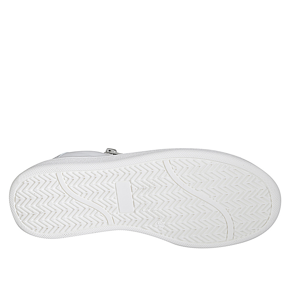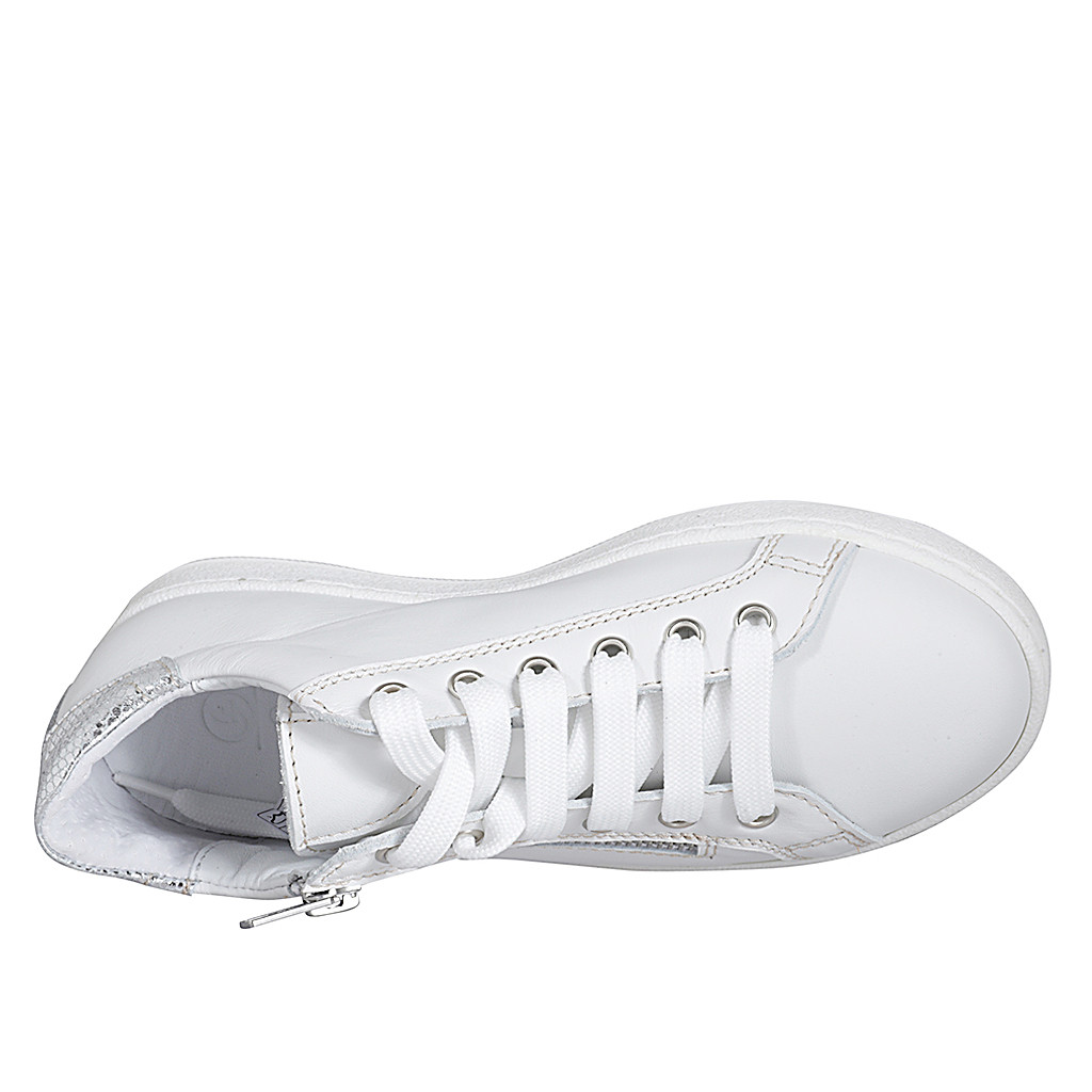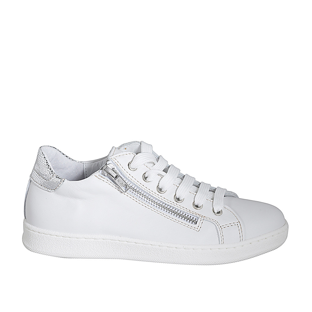 Woman's laced shoe with removable insole and zipper in white and silver laminated leather wedge heel 2 - Available sizes:  32