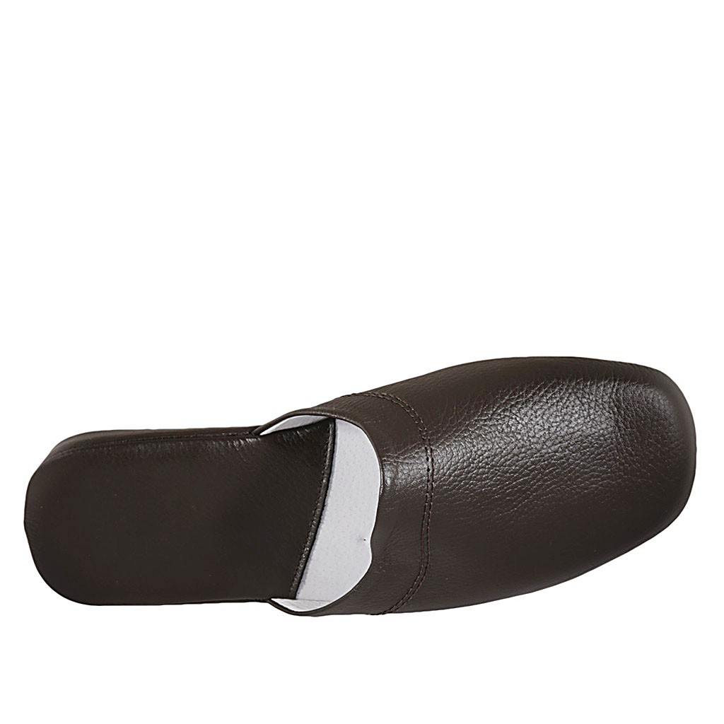 Men's slippers in dark brown leather - Available sizes:  47, 48, 49, 51