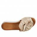 Woman's mule in beige suede with platinum printing and wedge heel 4