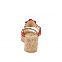Woman's open mules with memory foam insole, adjustable straps, and flower in red suede with platform and wedge heel 7