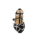 Woman's open shoe with pointy toe and double straps in black leather and spotted black and white haircalf heel 2