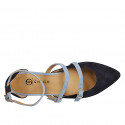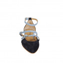 Woman's strappy sandal in black, white and red leather heel 2
