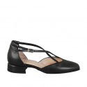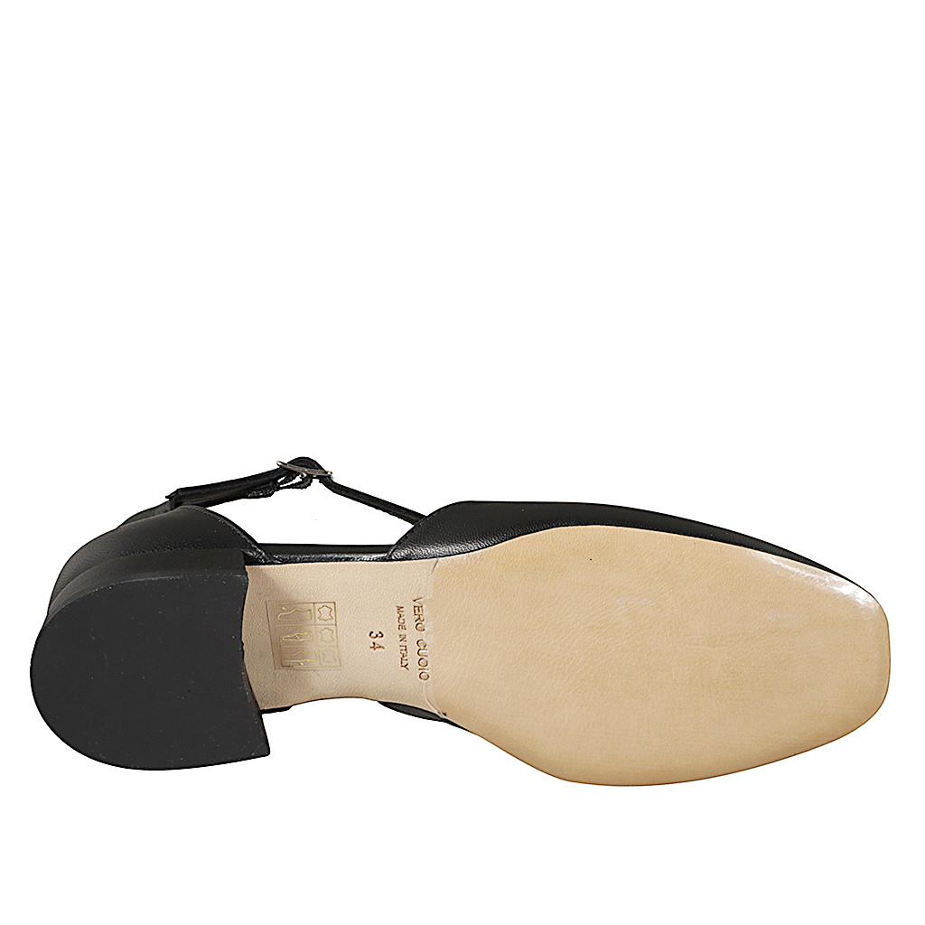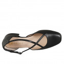Woman's open shoe with squared tip and crossed strap in black leather heel 3