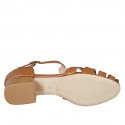 Woman's open fisherman shoes with T-strap in cognac leather and heel 4