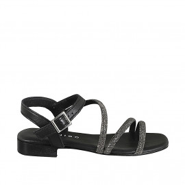 Women's sandal in copper leather and straps with rhinestones and wedge heel 4