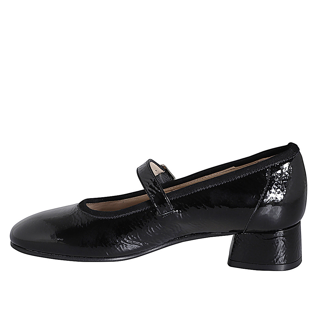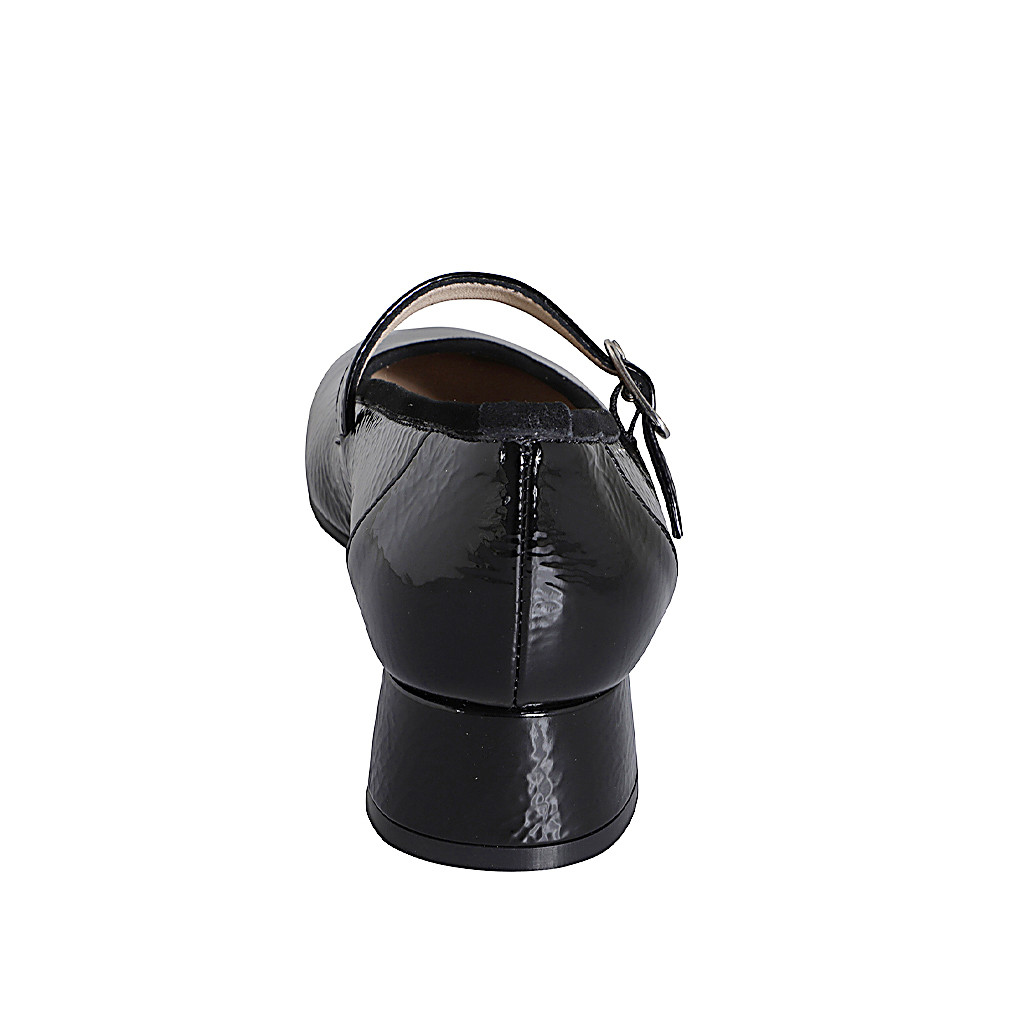Woman's Mary Jane with rounded tip in black patent leather heel 3