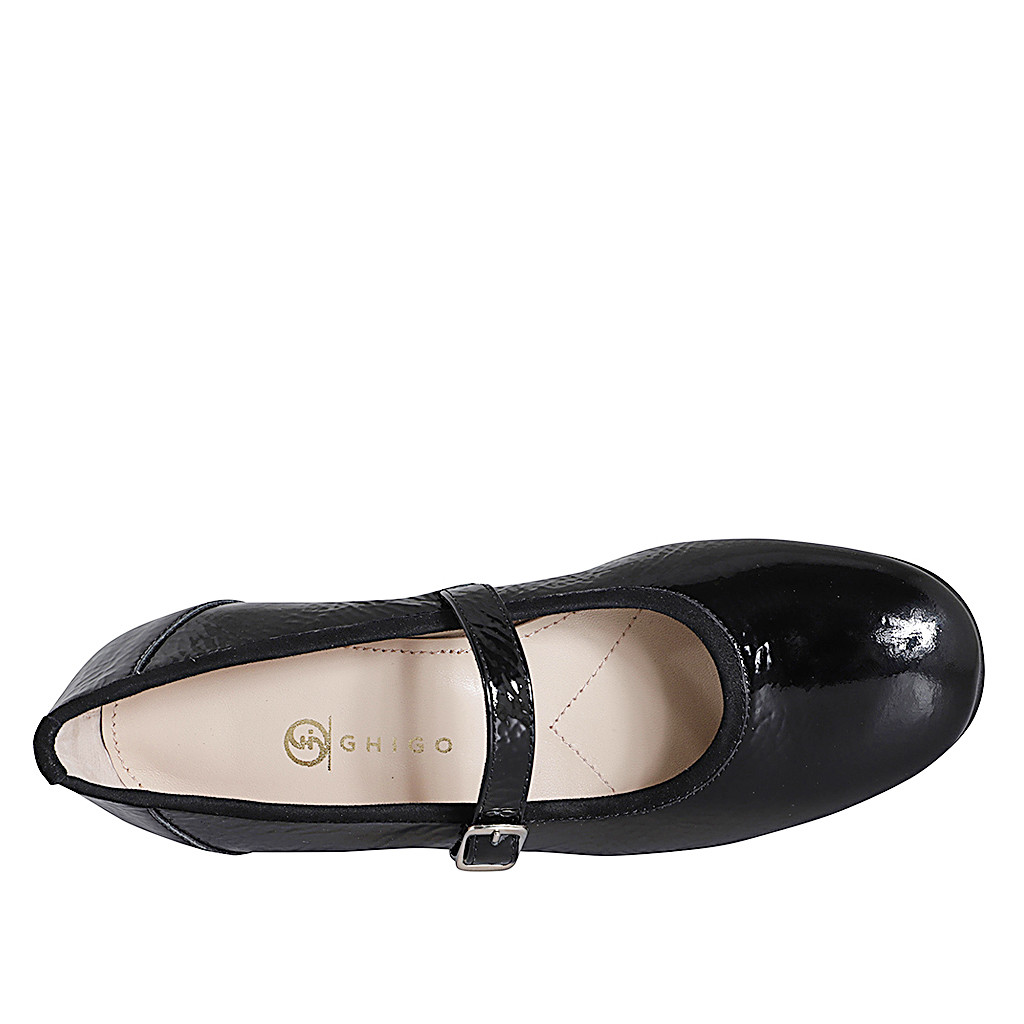 Woman's Mary Jane with rounded tip in black patent leather heel 3 - Available sizes:  32, 33, 42, 46
