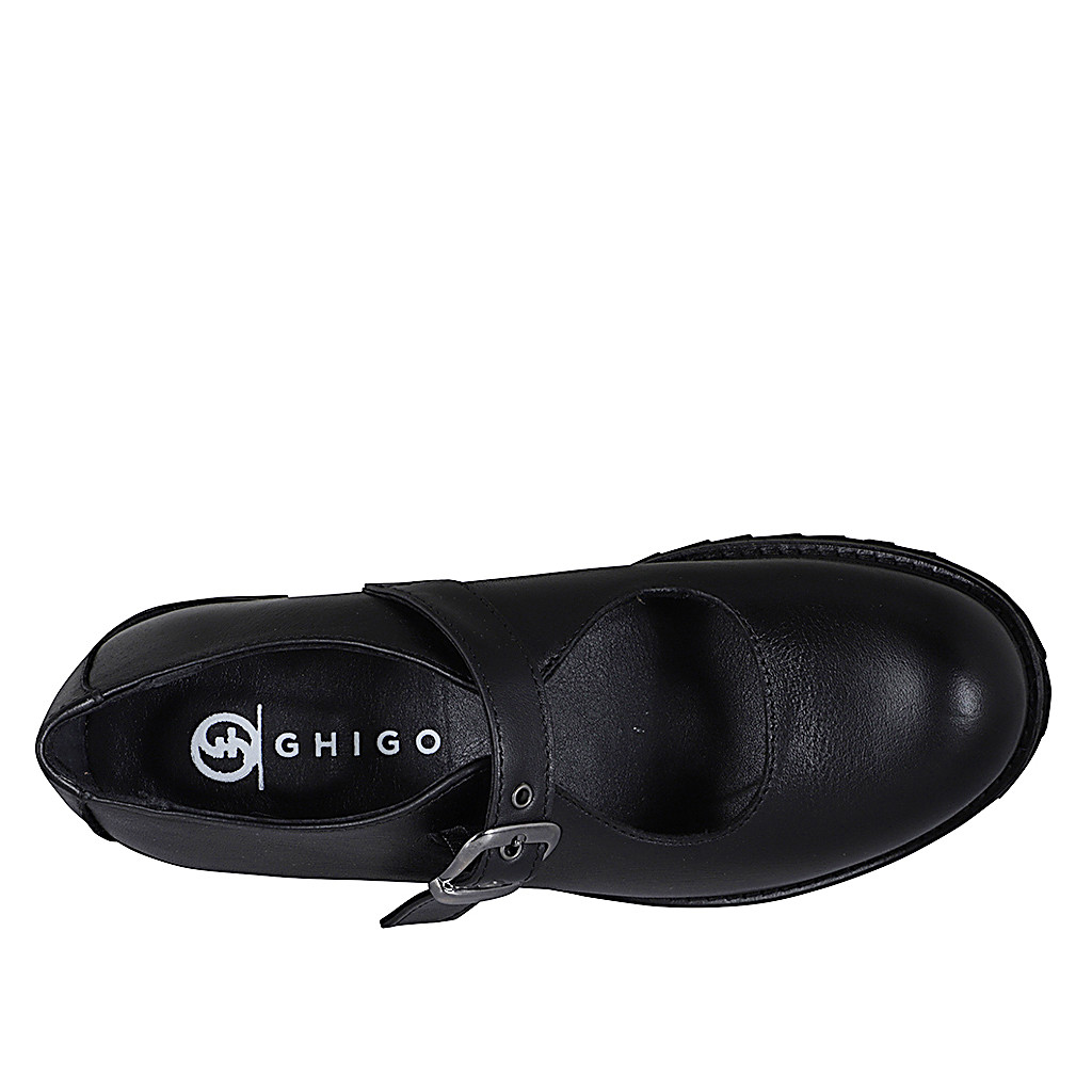 Woman's Mary Jane pumps in black leather heel 5 - Available sizes:  32, 35