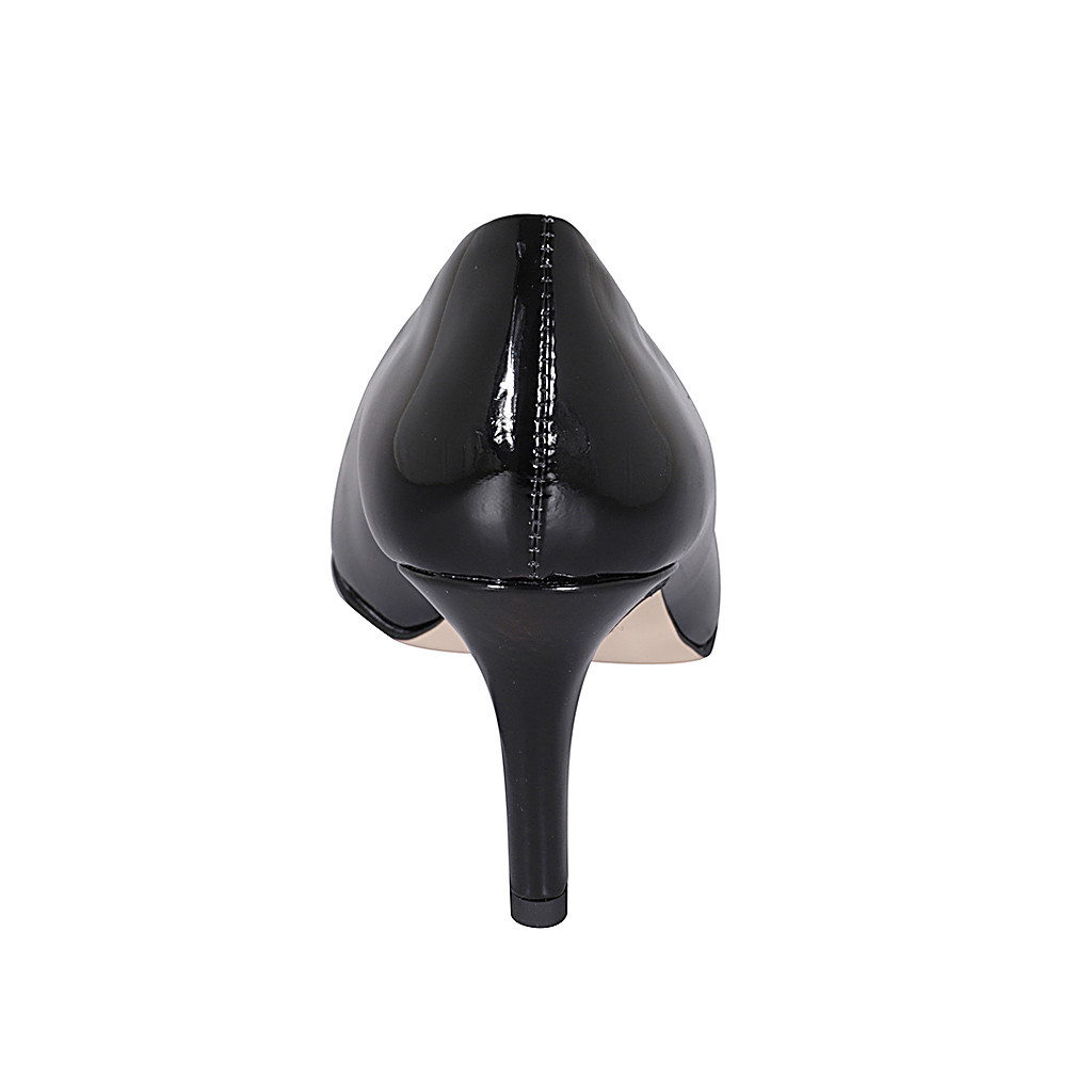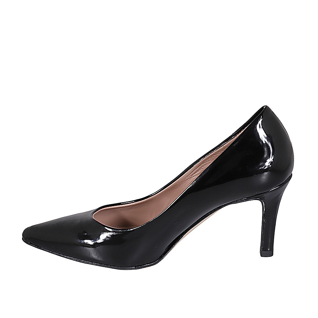 Woman's pointy pump in black patent leather with heel 7