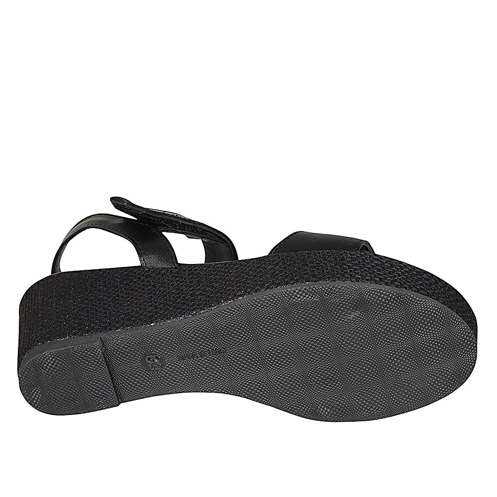 Woman's sandal in black leather with velcro strap wedge heel 6 - Available sizes:  42, 44