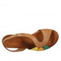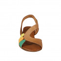 Women's sandals with elastic and diagonal strap in cognac, yellow, orange and green leather with heel 2