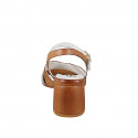 Women's sandal with ankle strap in white and cognac leather heel 6