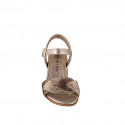 Women's sandal with ankle strap in laminated platinum and bronze leather heel 6
