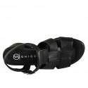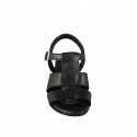 Womens' high fronted sandal in black leather with heel 6