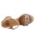 Women's sandal with single strap in tauep suede and drawstring fabric with multicolored floral print with heel 7