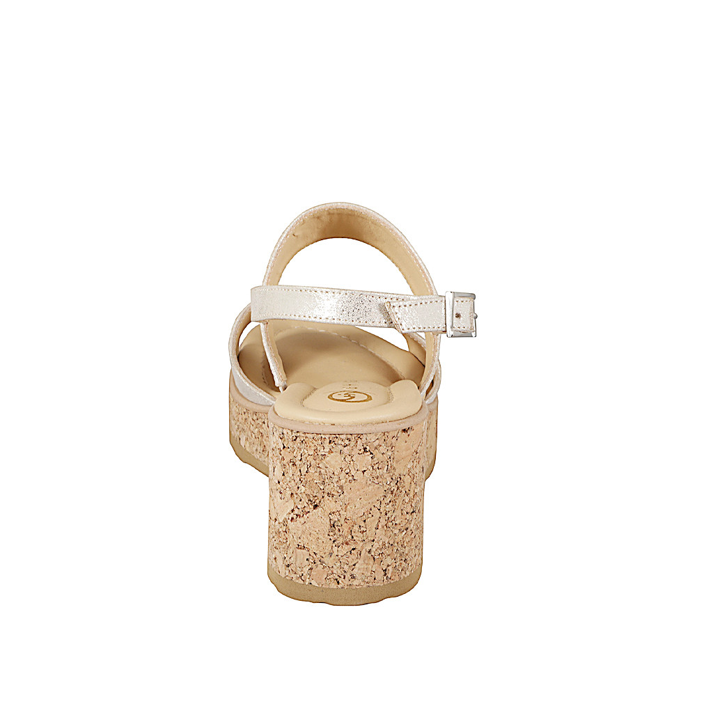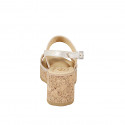 Woman's sandal with memory foam insole and elastic, in black leather, cork platform and wedge heel 7