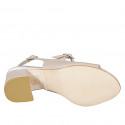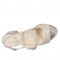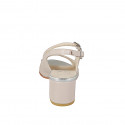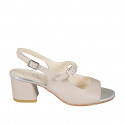 Woman's sandal Mary Jane style in nude and laminated silver leather with heel 5
