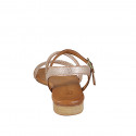 Women's sandal with ankle strap in copper leather and straps with copper-color rhinestones, heel 2