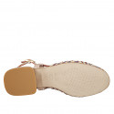 Woman's Slingback shoe with rounded toe in nude leather and multicoloured raffia fabric heel 2