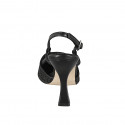 Woman's pointy open shoe with buckle in ivory printed leather with heel 2