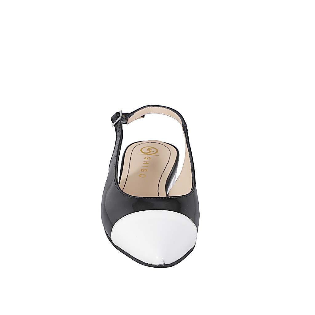 Woman's rounded-tip Slingback in Mary Jane style with double straps in nude patent leather and heel 5