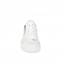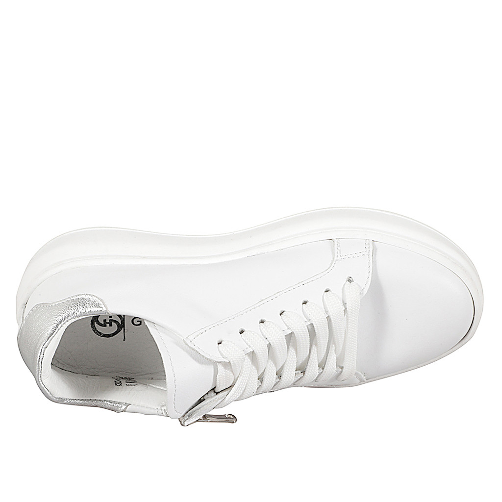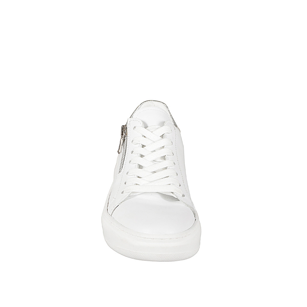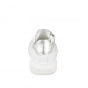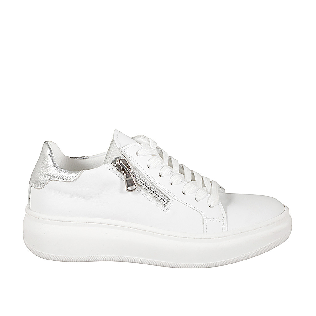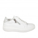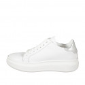 Woman's laced shoewith removable insole and zipper in white and laminated silver leather wedge heel 4