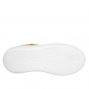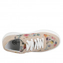 Woman's laced shoe with removable insole in beige suede and drawstring fabric with floral print wedge heel 4