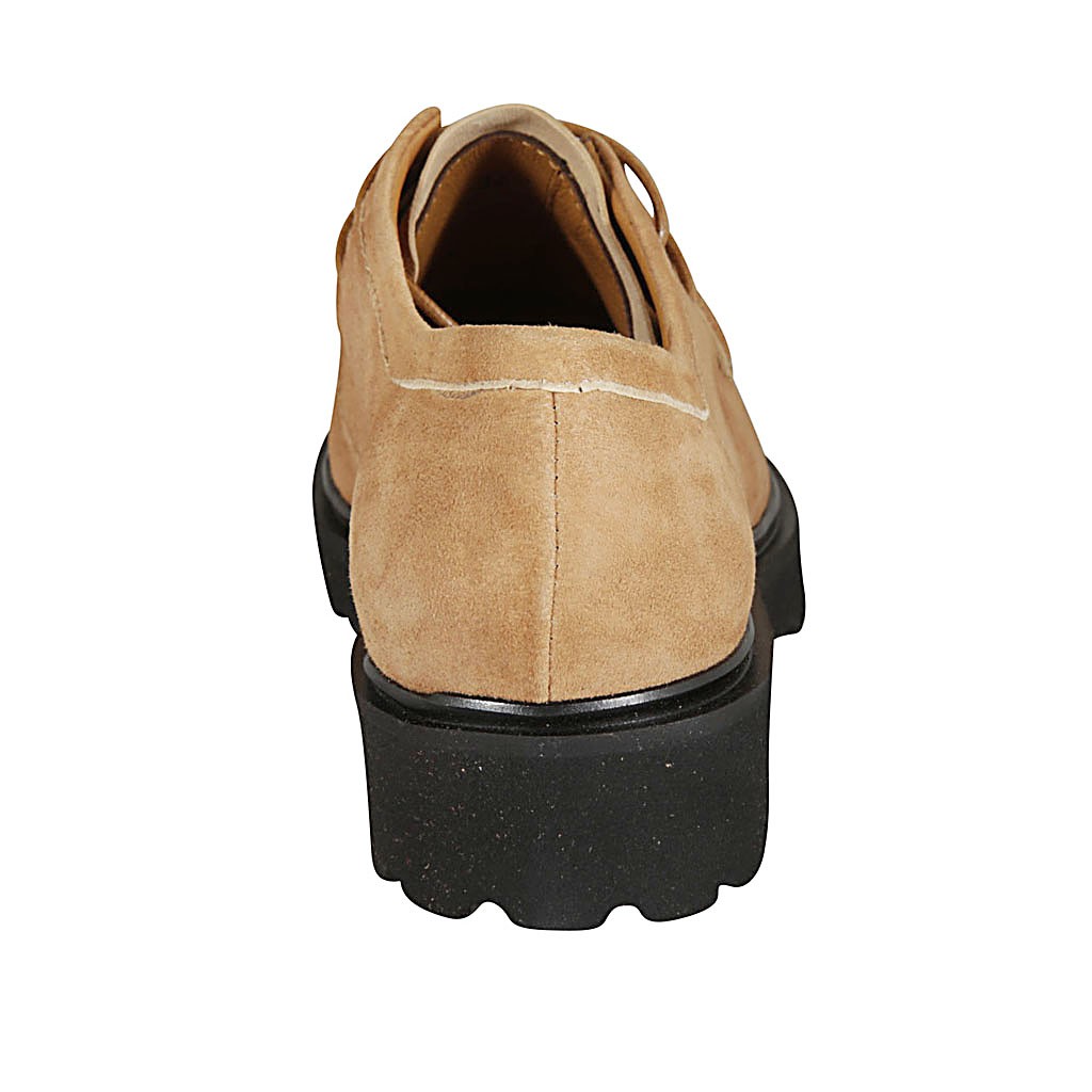 Woman's pump with studs in rose pierced suede and leather wedge heel 4