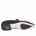 Woman's pointy Mary Jane in blue suede with strap and rhinestone flower heel 2 - Available sizes:  32, 33, 34, 35, 42, 45