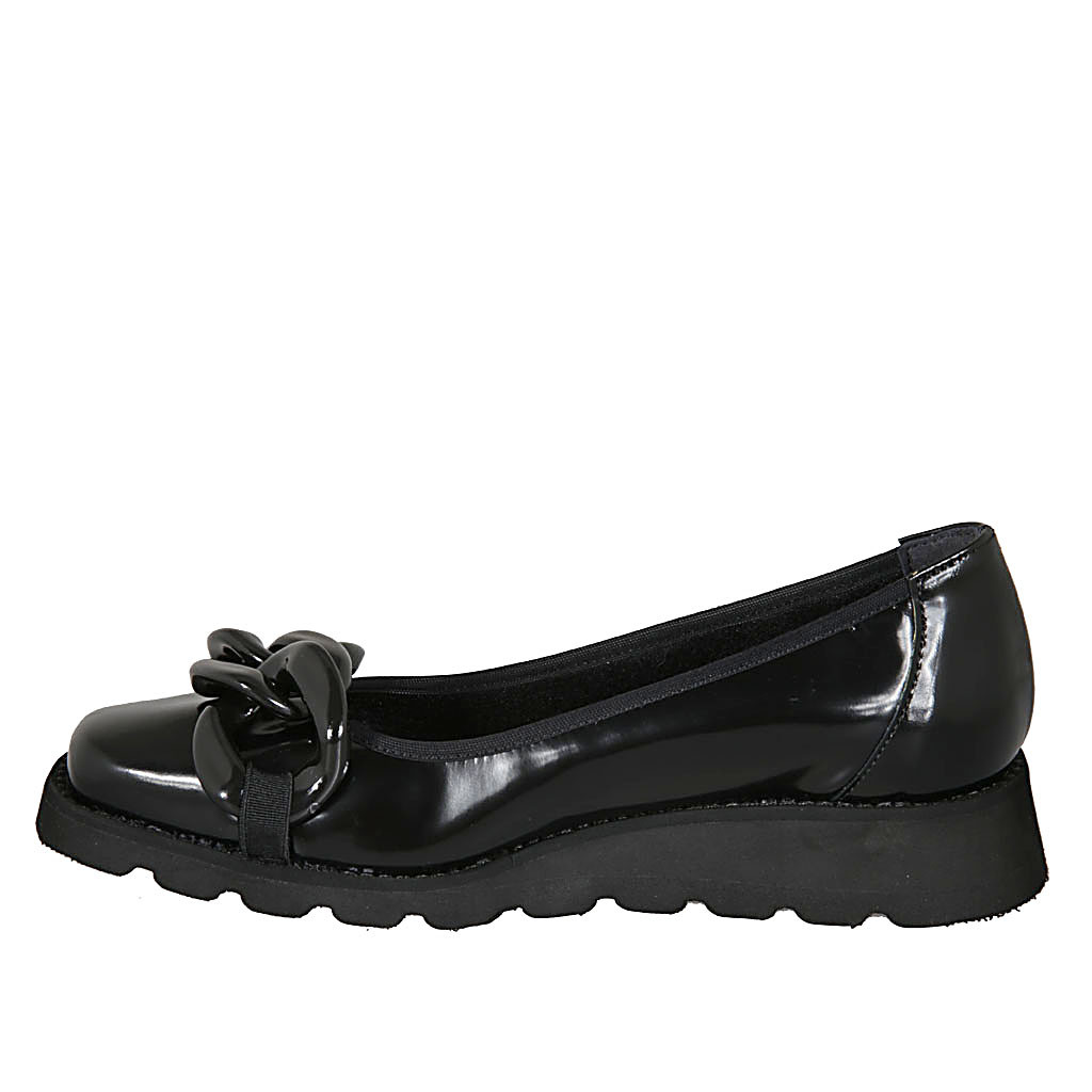 Bailarina para mujer en piel cepillada negra con cadena cuña 3