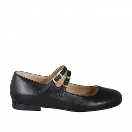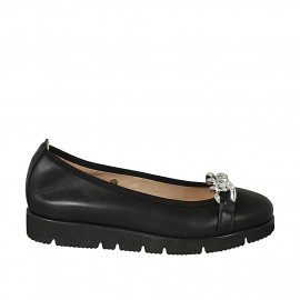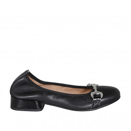 Bailarina para mujer en gamuza y piel negra con puntera y accesorio tacon 3 - Tallas disponibles:  32, 33