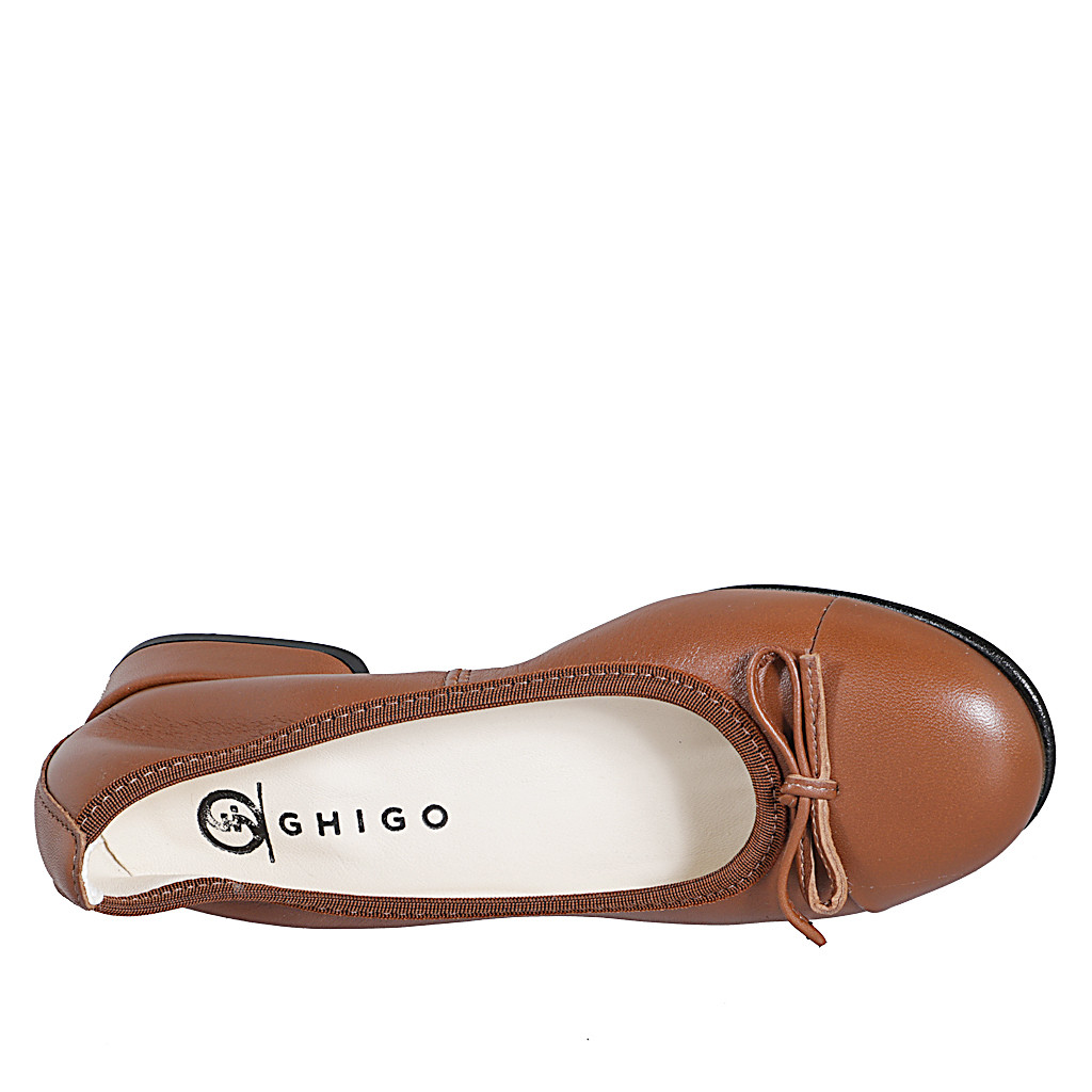 Zapato abierto puntiagudo para mujer con correas en gamuza cognac y marron claro tacon 1