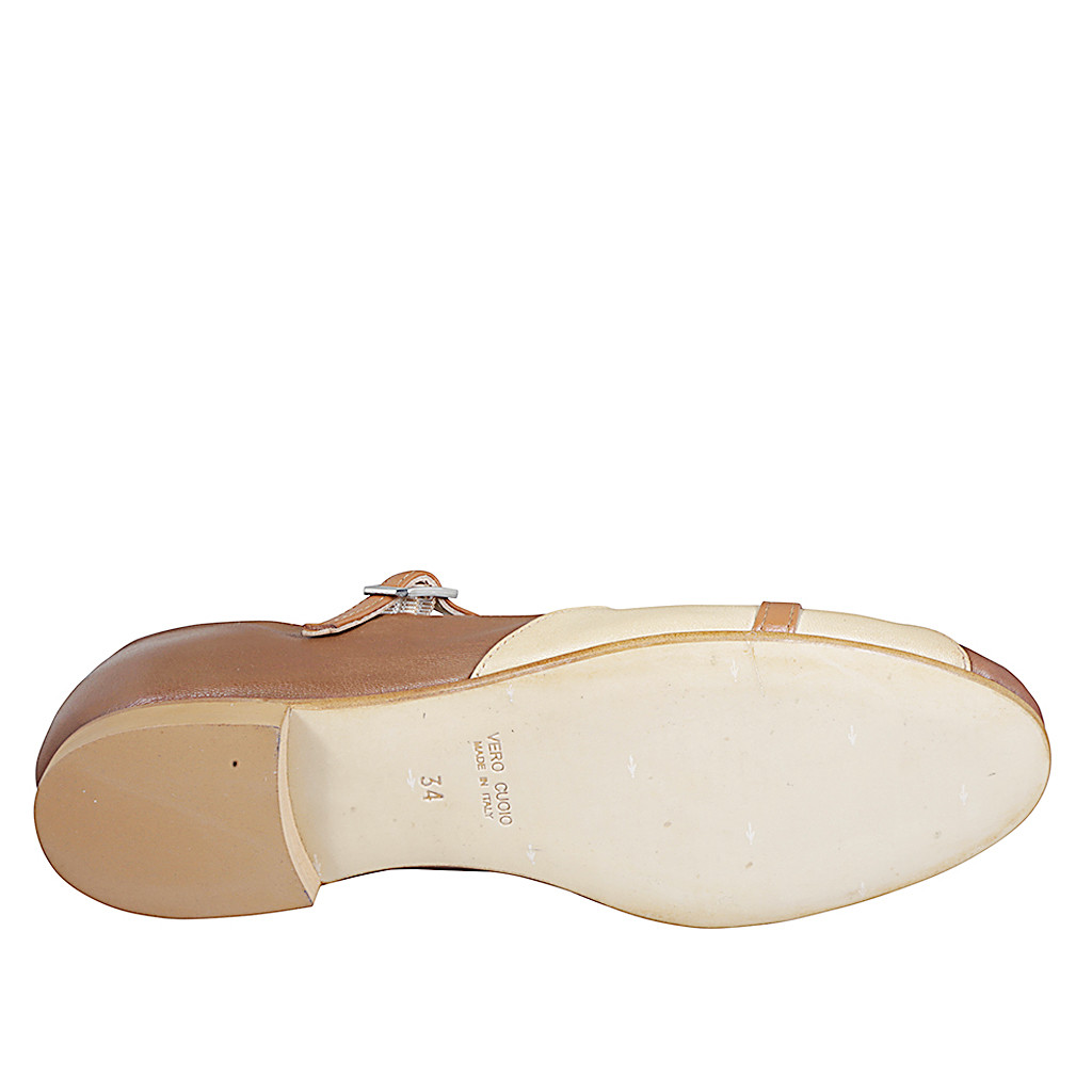 Bailarinas para mujer con cinturón Charleston en piel marrón, coñac y beige tacon 1