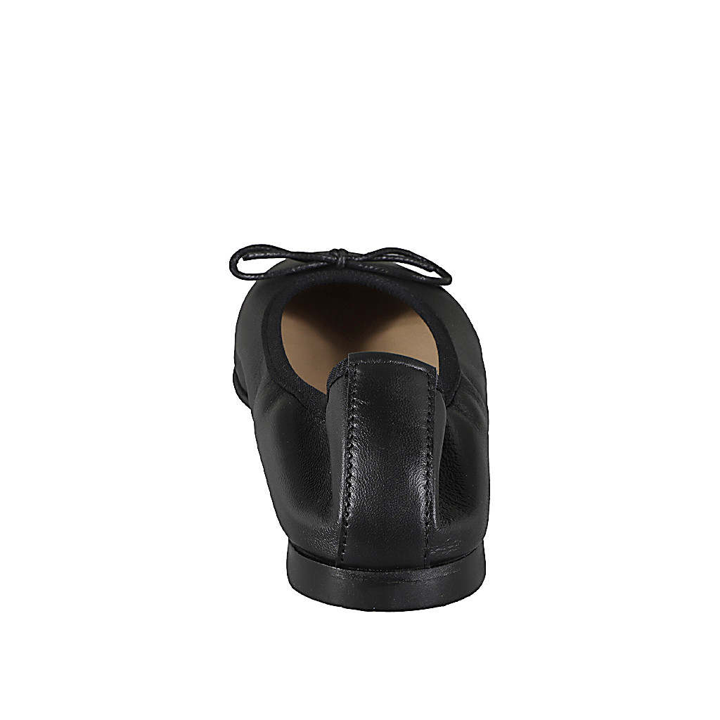 Zapato bailarina con moño para mujer, en piel de color negro, sin forro y con tacón 1