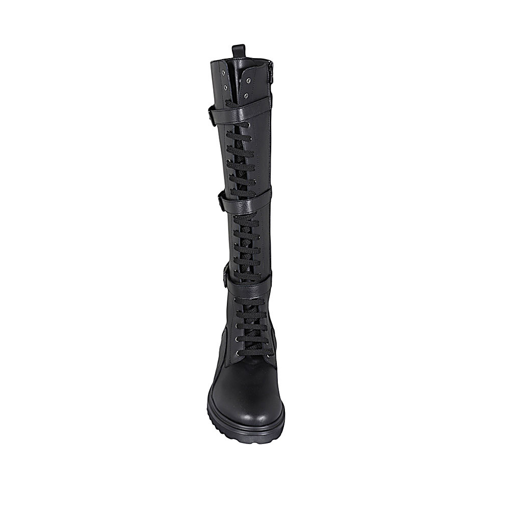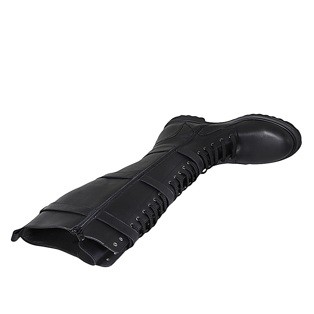 Zapato para mujer en piel blanca y negra con elastico y puntera cuña 4