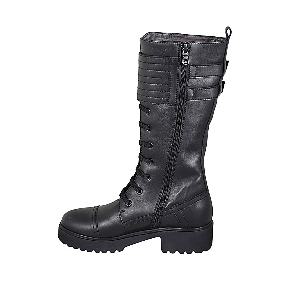 Zapato abierto para mujer con cinturon y nudo en gamuza negra tacon 11