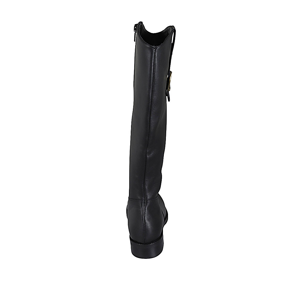 Bota para mujer con hebilla y cremallera en piel negra tacon 3 - Tallas disponibles:  33, 44