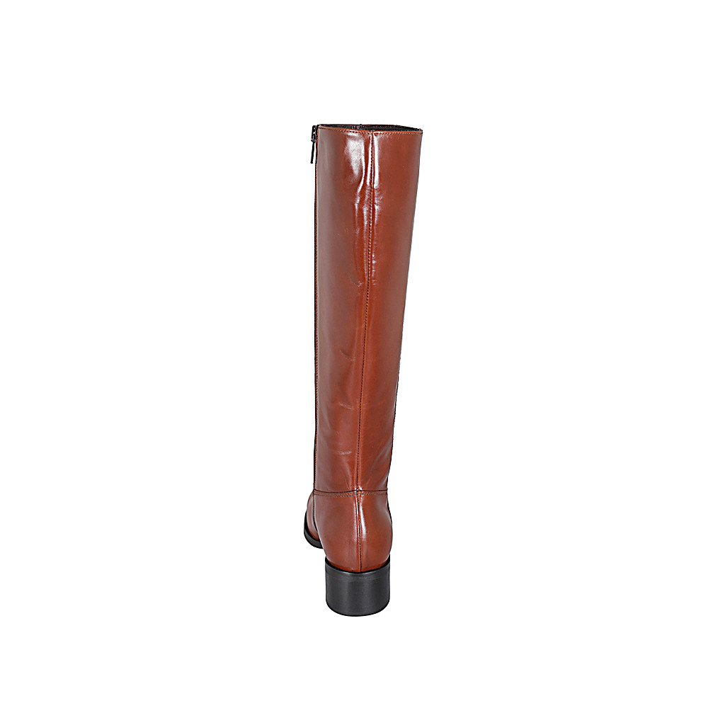 Bota para mujer con cremallera en piel cognac con tacon 5 - Tallas disponibles:  43, 44