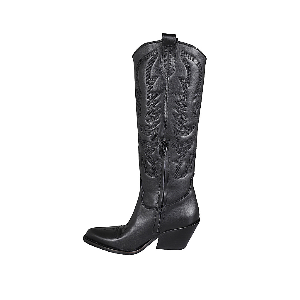 Bota tejana para mujer con cremallera y bordado en piel negra tacon 7
