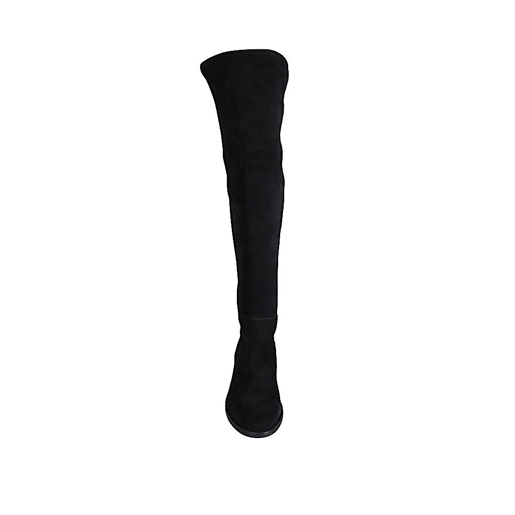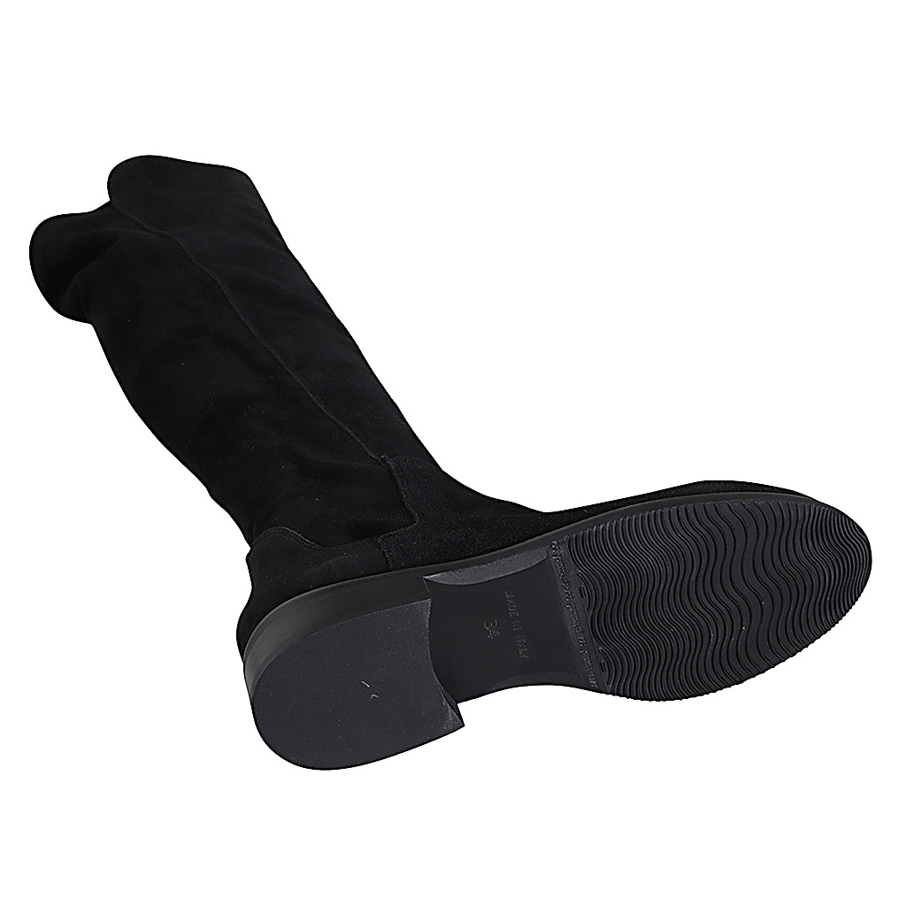 Bota para mujer con media cremallera en gamuza y gamuza elastica negra tacon 3