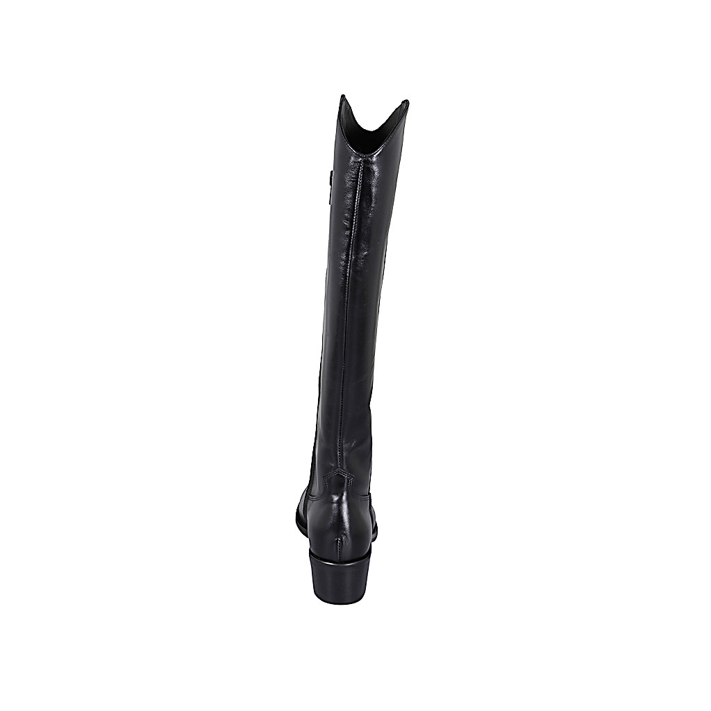 Zapato para mujer con cordones y cremallera en piel y charol negro cuña 3