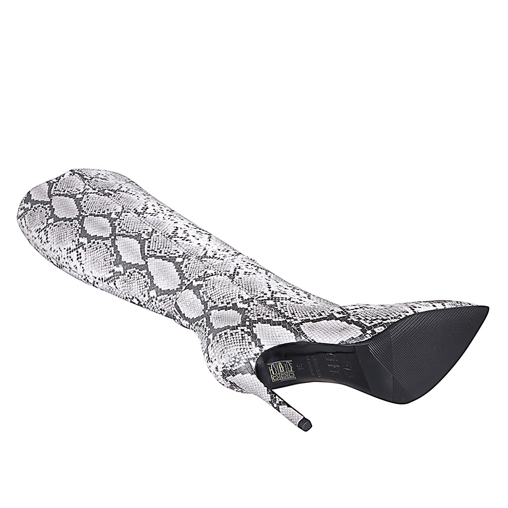 Bota para mujer con cremallera y elástico en piel negra tacón 7