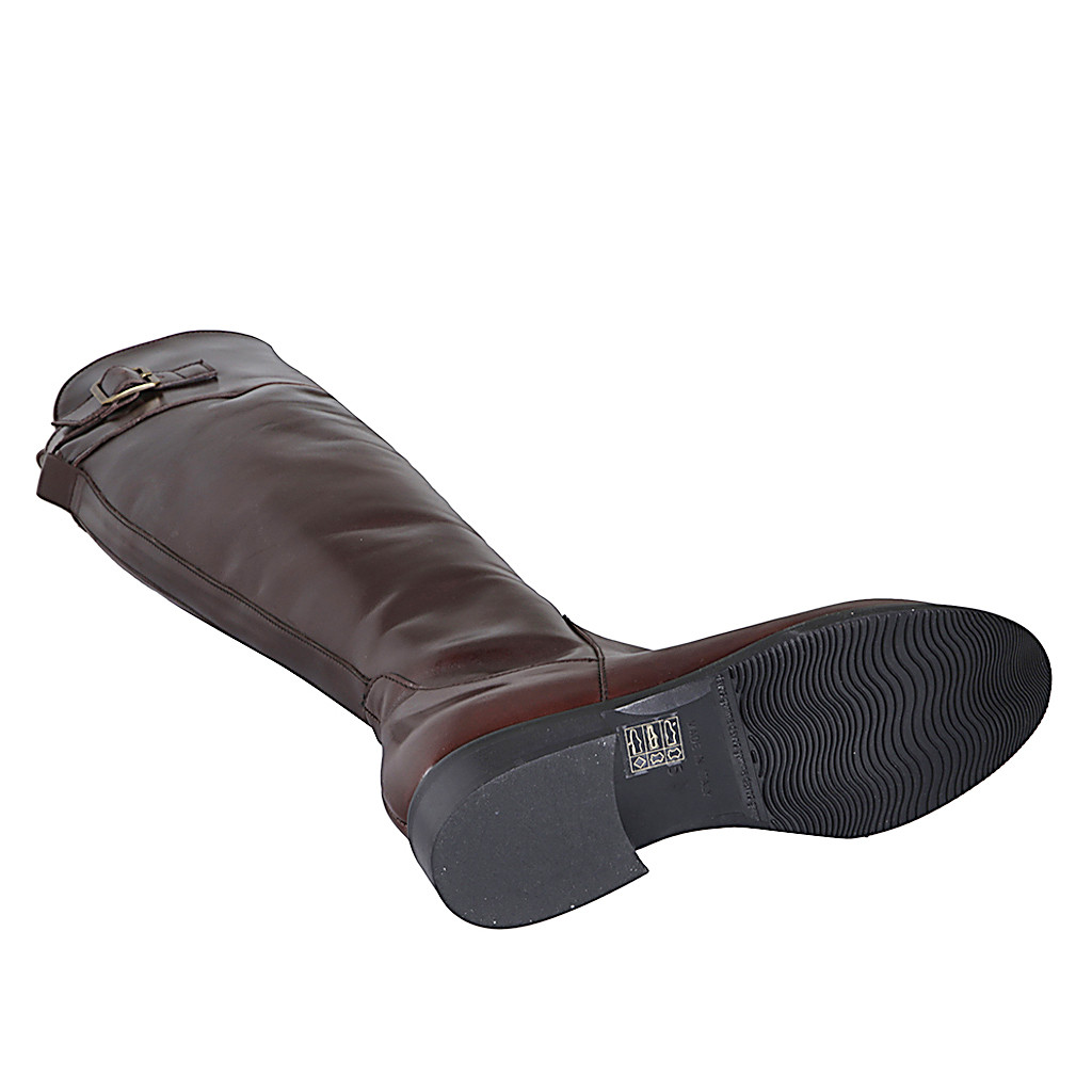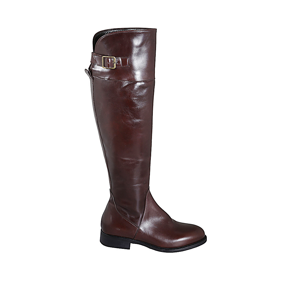 Botas a la rodilla para mujer con cremallera y hebilla trasera en piel marrón oscuro tacón 3 - Tallas disponibles:  33, 34, 35, 42, 43