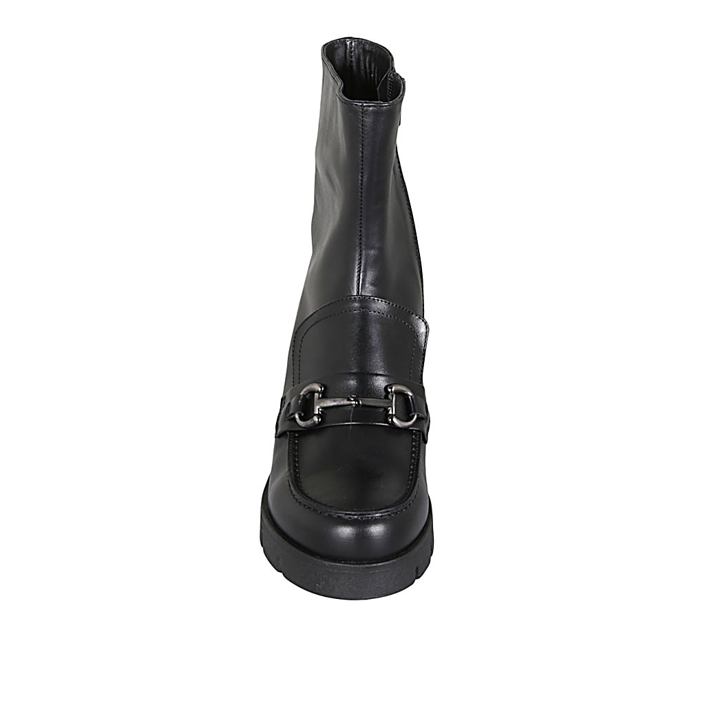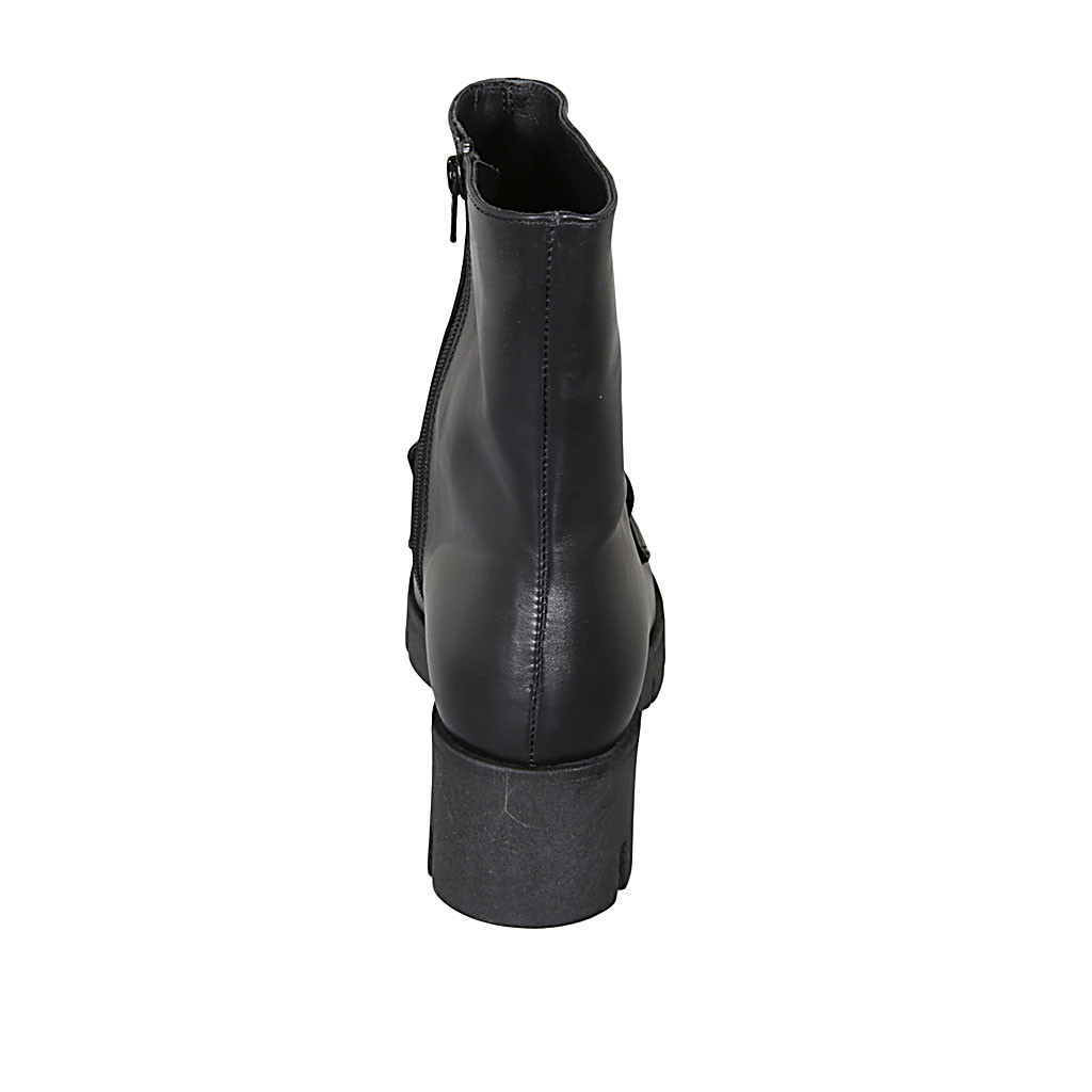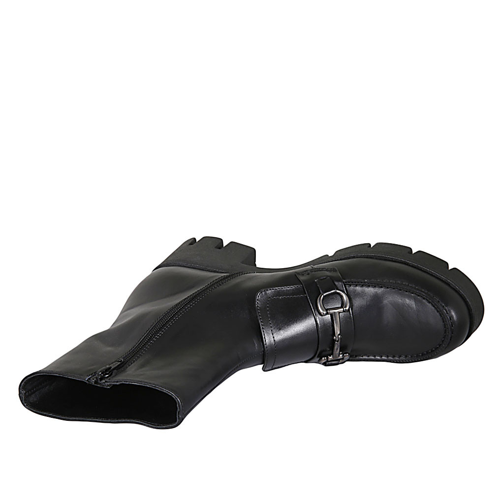 Botines para mujer con cremallera y accesorio en piel negra tacon 6