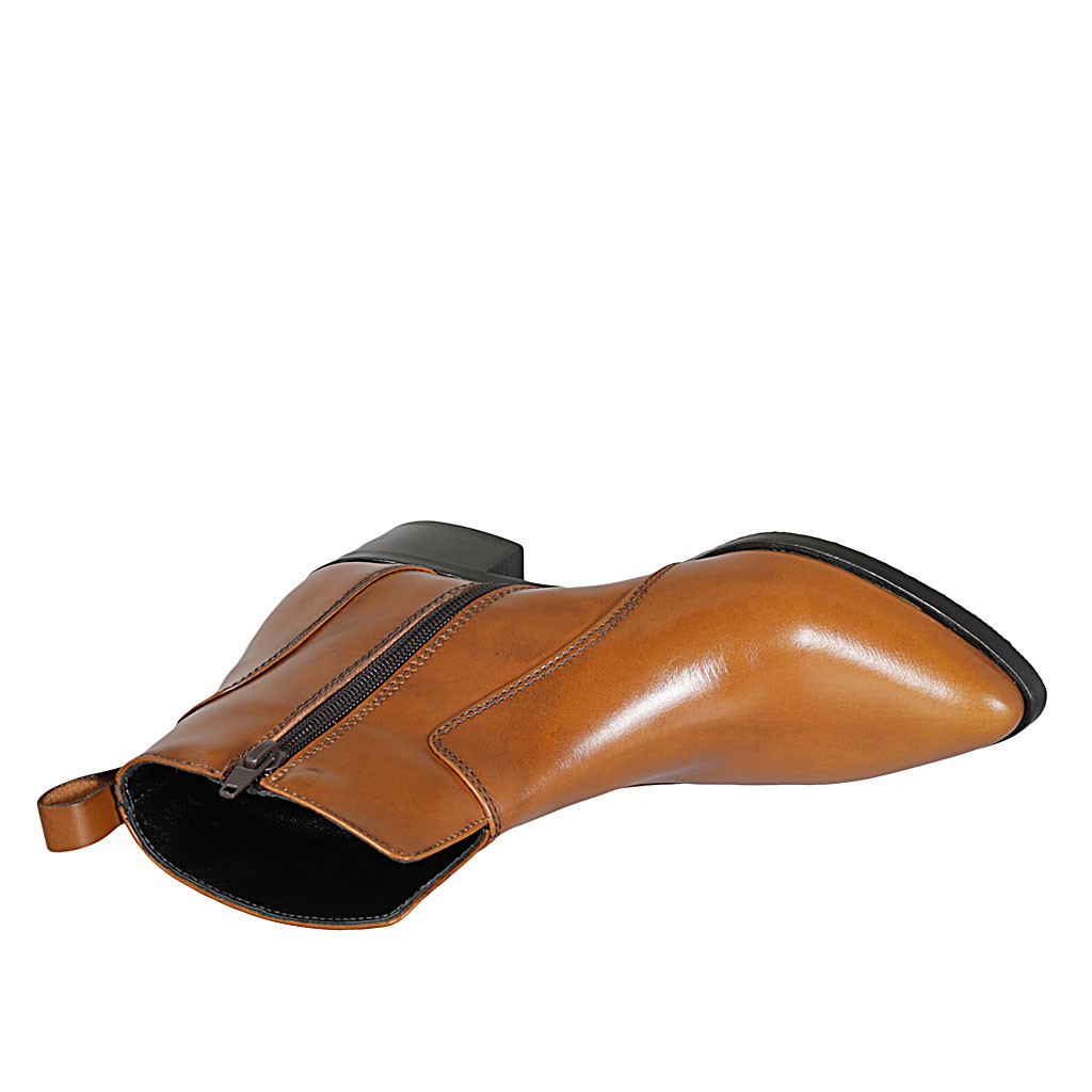 Botin tejano para mujer con cremallera en piel cognac tacon 4