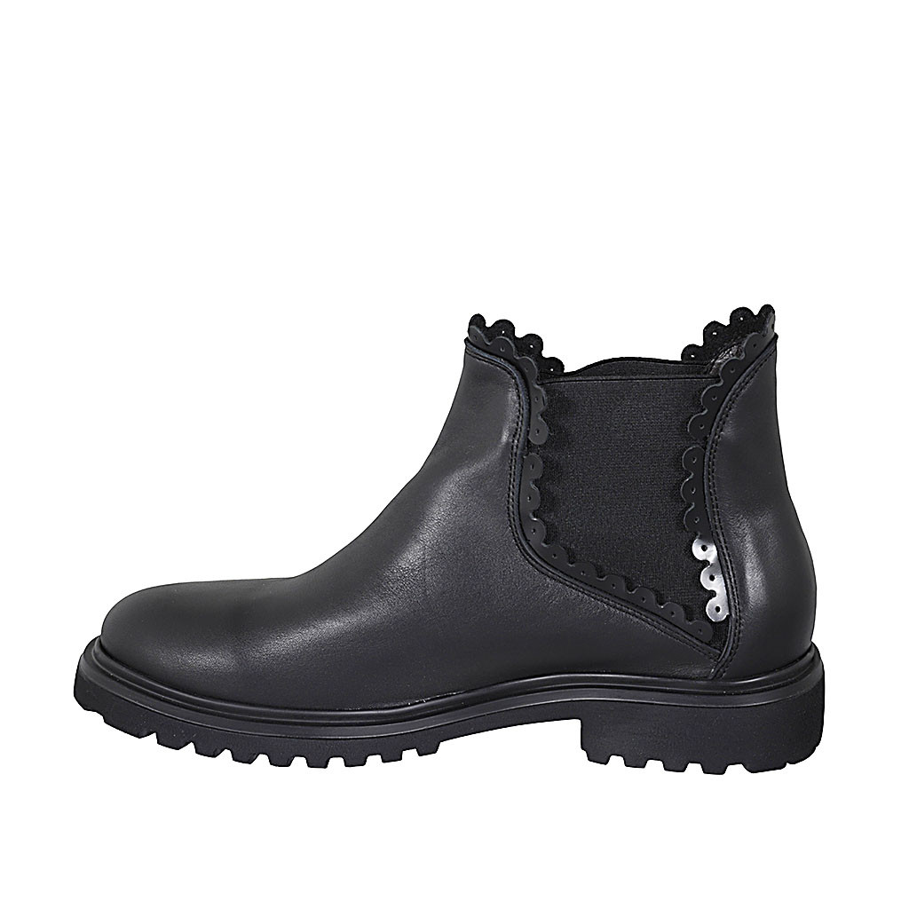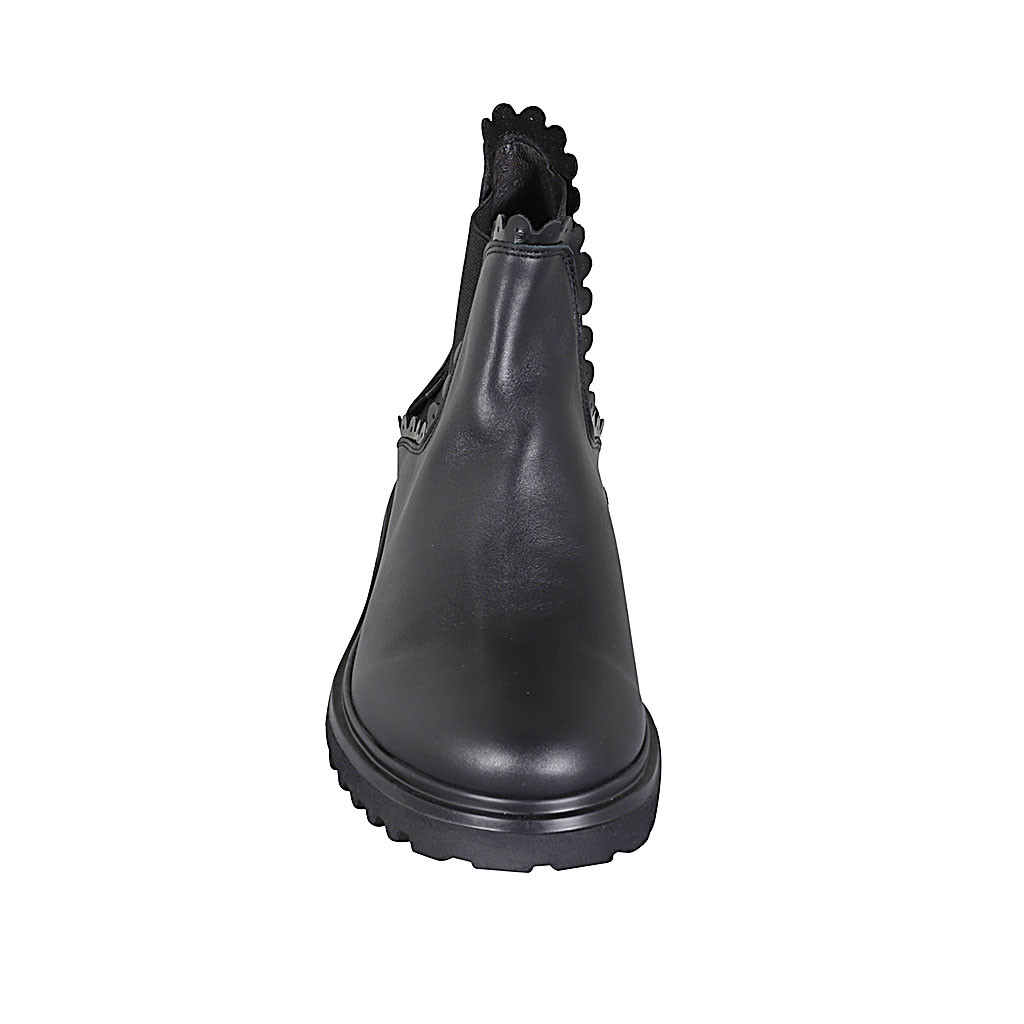 Zapato alto al tobillo con cordones en piel y gamuza de color negro y piel color negro cuña 2