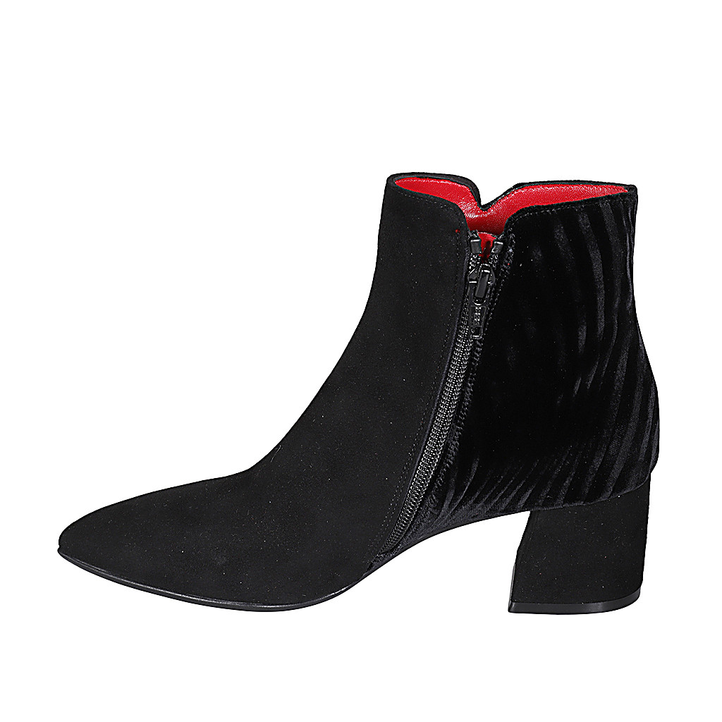 Botin puntiagudo para mujer con cremallera en gamuza y terciopelo negra tacon 6 - Tallas disponibles:  33, 35, 43, 44
