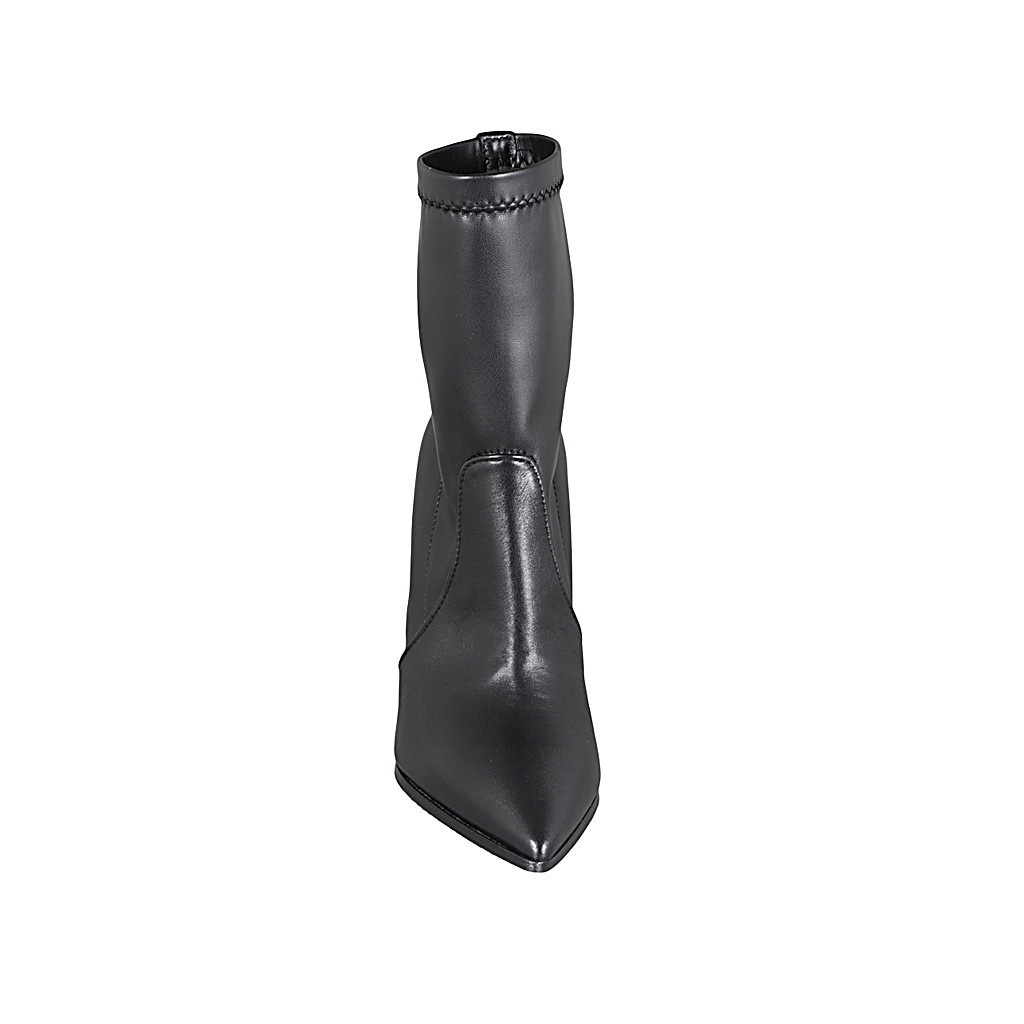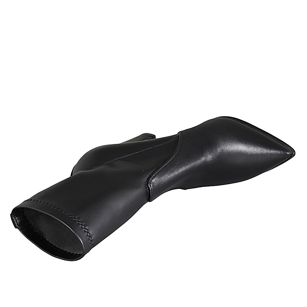 Sandalia con cinturon para mujer en piel trensada negra tacon 7