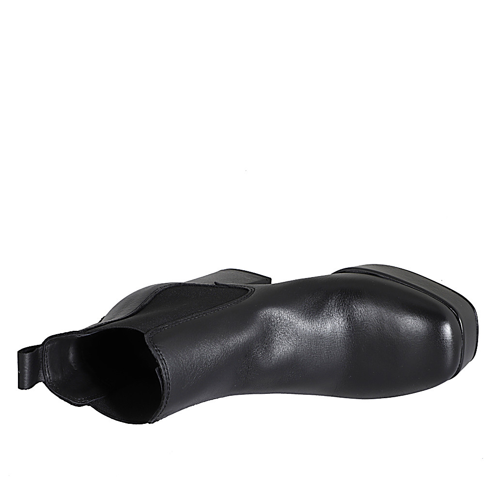 Botines con plataforma para mujer con punta cuadrada y elasticos en piel de color nergro tacon 10